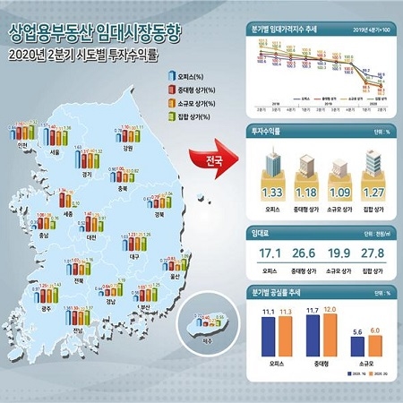 한국감정원은 29일 ‘2020년도 2분기 전국 상업용 부동산 임대시장 동향’을 조사한 결과를 발표했다.