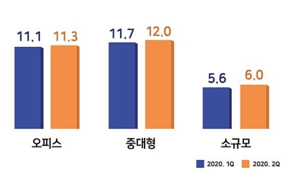 이번 2분기 상업용 부동산 임대 동향 조사결과를 전반적으로 살펴보면 오피스를 비롯한 모든 상가 유형에서 지난 분기 대비 임대료와 투자수익률이 떨어지고 공실률은 다소 증가했다.