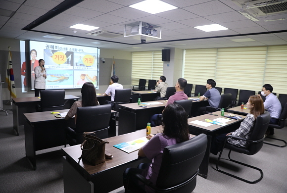 이날 교육은 내부직원의 인권침해와 직무 스트레스 예방, 인권침해 고충 피해에 대한 동료, 상담자로서 필요한 상담기법을 주제로 진행됐다.
