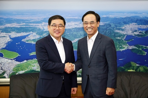 경남 창원시는 29일 이용배 현대로템 대표이사가 창원시청을 방문하고 허성무 시장과 면담을 통해 '2040 창원 수소비전'에 따른 현대로템의 수소트램 개발 및 수소충전 설비공급 사업에 대해 상호 협력방안을 논의했다고 밝혔다.