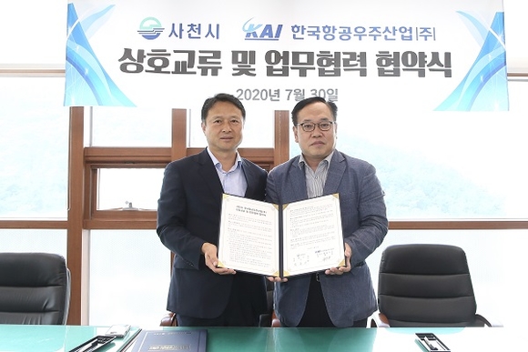 경남 사천시와 한국항공우주산업(KAI)은 30일 사천시청에서 양 기관의 발전과 지역경제 활성화를 목적으로 상호교류 및 업무협력 협약식을 가졌다.