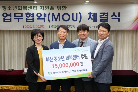이번 협약을 통해 고리본부는 정부지원금 미 수혜 청소년회복센터 3개소에 1500만원의 후원금을 지원한다. 지원금은 부산가정법원에서 소년법상 보호처분을 받은 보호소년의 건전한 육성과 사회복귀를 돕고 청소년 복지 사각지대를 해소하는데 쓰일 계획이다.