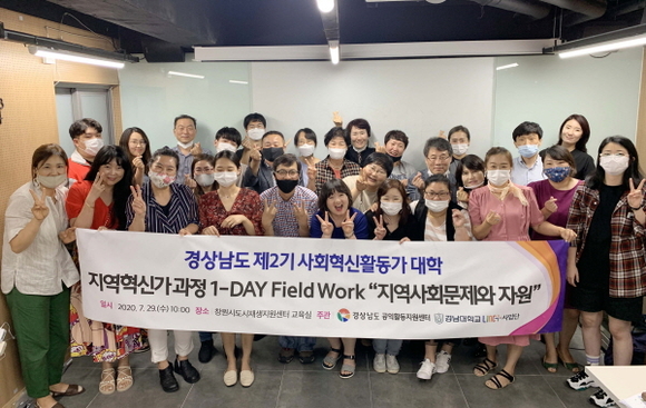 경남도 제2기 사회혁신활동가 대학은 지난 6월 26일 입학식을 시작으로 8월까지 약 2개월간 공통과정 및 단과과정 이수 프로그램이다. 현재 경남대는 ‘지역사회혁신가과정’과 ‘NPO활동가양성과정(여성)의 2개 교육과정을 맡고 있다.