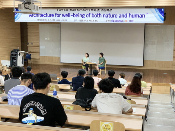 MAD Architecture 부사장 Flora Lee가 특강을 진행하고 있다. (사진=창원대 제공)