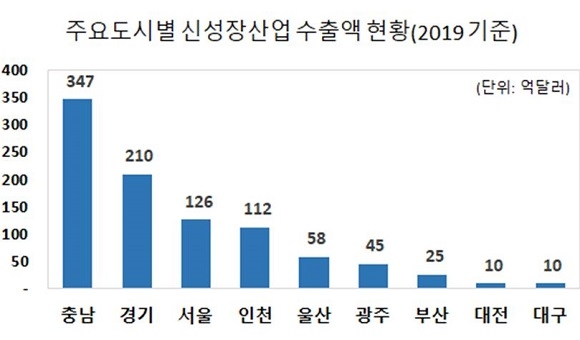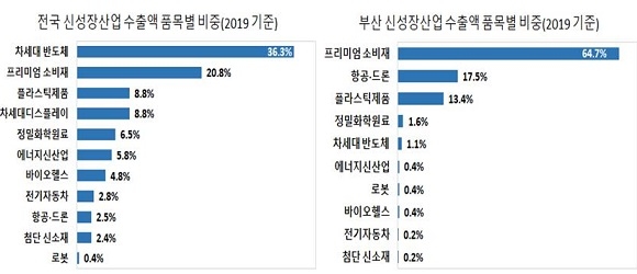 그러나 이렇듯 수출 증가세로 선방했음에도 불구하고 부산지역의 신성장산업에 속한 품목군의 수출 위상은 타 도시에 비해 대단히 낮은 수준인 것으로 밝혀졌다.