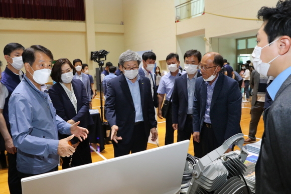 한국수력원자력 김형섭 부사장(가운데)과 이신선 고리원자력본부장(왼쪽 첫 번째)이 관계자들과 행사장을 둘러보고 있다. (사진=고리본부 제공)