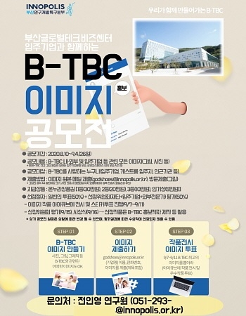 공모전은 B-TBC 내·외부 및 입주기업 관계자의 열정적 회의 모습 등 사진 또는 그림을 포함한 B-TBC에 대한 모든 이미지 제출이 가능하다.