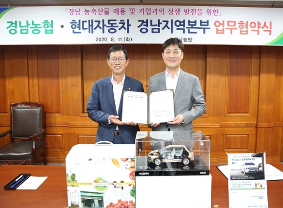 경남농협과 현대자동차(주) 경남지역본부는 11일 경남농협 회의실에서 관계자 10여명이 참석한 가운데 '상생 발전을 위한 공동협력서'를 채택하고 경남 농축산물 소비 촉진과 기업과의 상생발전을 위한 협력사업을 전개하기로 했다.