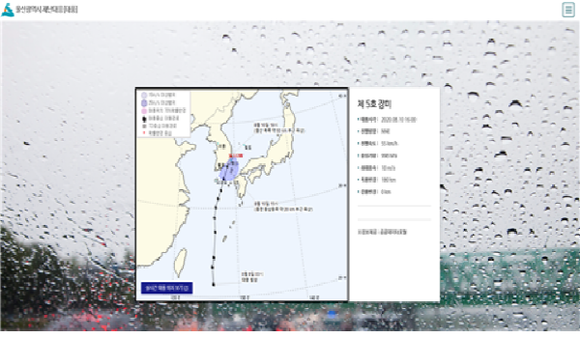 울산시 재난 대응(태풍) 웹 메임화면.(사진=울산시 제공)