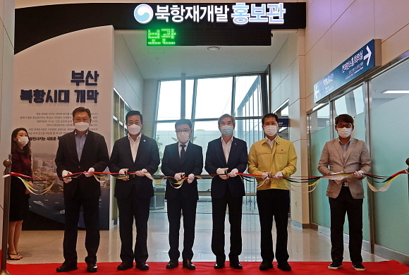 부산항 국제여객터미널 5층에 100여평 규모로 조성된 홍보관에는 북항재개발 사업의 추진 배경과 성과를 나타낸 그래픽, 북항의 미래상을 축소한 모형, 체험형 영상 등 콘텐츠가 전시됐다.