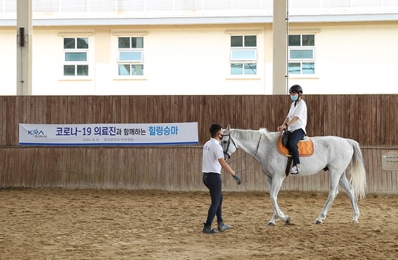 한국마사회 렛츠런파크 부산경남은 지역 최일선에서 코로나19에 대응하고 있는 의료진을 대상으로 힐링승마 프로그램을 운영한다고 13일 밝혔다.
