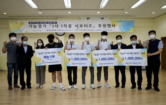이날 행사는 지역 특성화고의 전국기능경기 출전 유망선수를 대상으로 1사 1직종 서포터즈(지역사회 기능경기사업 자율 후원조직)를 매칭 후, 후원금을 전달하는 순으로 진행됐다.
