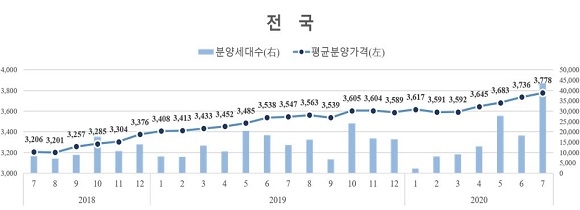 주택도시보증공사(HUG)는 전국 민간아파트의 분양보증사업장 정보를 집계, 분석한 ‘2020년도 7월 말 기준 민간아파트 분양가격 동향’ 조사 결과를 18일 발표했다.