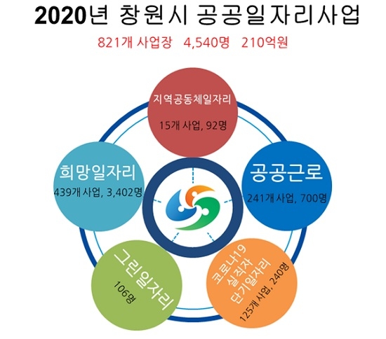 창원시는 올 한해 코로나19와 고용위기지역 극복과 침체된 지역경제에 활력을 불어넣기 위해 총 821개 사업장에서 4540개 공공일자리를 창출하는 등 지역경제 활성화를 위해 210억원의 예산을 투입했다.
