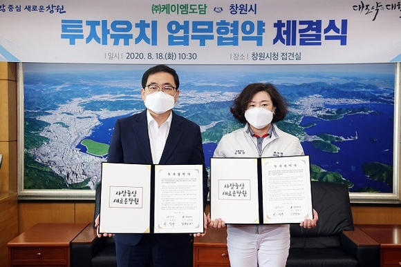 경남 창원시는 18일 보건용·의료용 마스크 제조기업인 ㈜케이엠도담과 총 210억원 투자로 500여명에게 일자리를 제공하는 투자유치 업무협약을 체결했다.