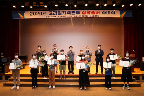 고리본부는 지난 19일 오후 부산시 기장군 장안읍 고리스포츠문화센터 멀티공연장에서 ‘2020년 고리원자력본부 장학증서 수여식’을 갖고, 올해 장학생으로 선발된 309명에게 장학금과 장학증서를 수여했다.