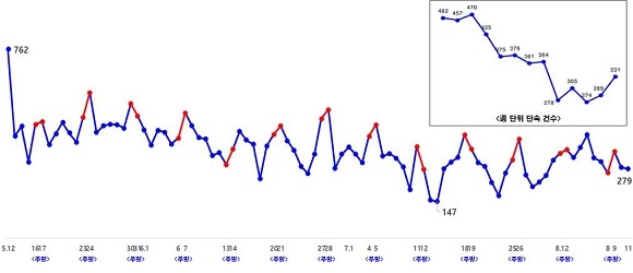 반면 운전자 등이 우려했던 차량 정체는 미미한 것으로 나타났다. 부산 중앙대로의 속도는 시행 전 평균 28.2㎞/h에서 시행 후 27.8㎞/h로 약 0.4㎞/h 줄었다.