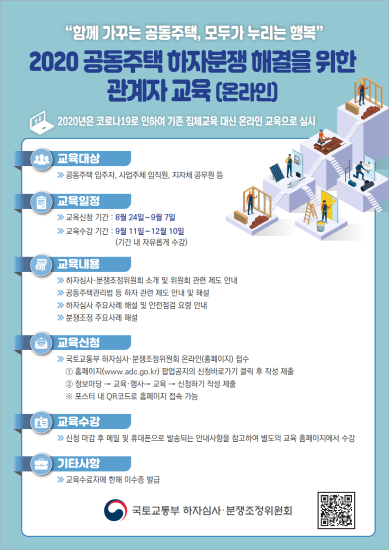 ‘공동주택 하자분쟁 해결’ 온라인 교육 실시… 9월 7일까지 접수