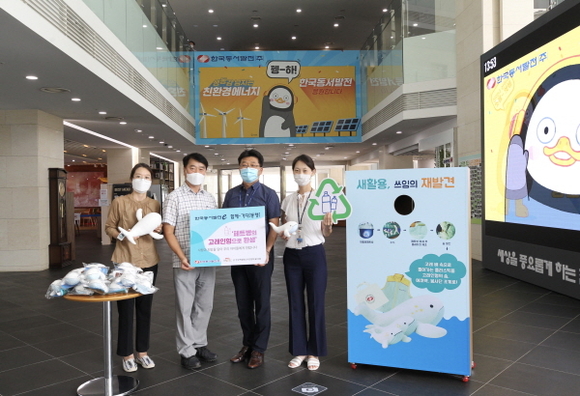한국동서발전은 26일 오후 2시 본사 1층 로비(울산 중구 소재)에서 동서발전 임직원 및 지역 복지시설 관계자들이 참석한 가운데 폐플라스틱으로 만든 친환경 고래인형 전달식을 가졌다.