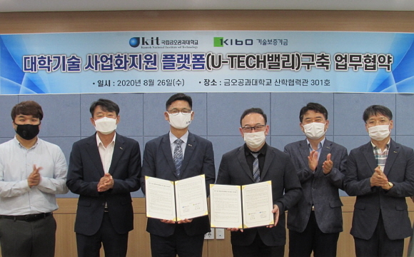 기술보증기금(기보)과 금오공대가 지난 26일 경북 구미시 소재 금오공대 본부에서 교수, 연구원 등 기술인재의 창업 활성화를 위한 ‘U-TECH 밸리’ 구축 협약을 체결했다고 27일 밝혔다.