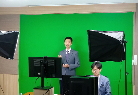 농협창녕교육원 안상준 교수(왼쪽)가 원격 Live 강의를 진행하고 있다. (사진=경남농협 제공)
