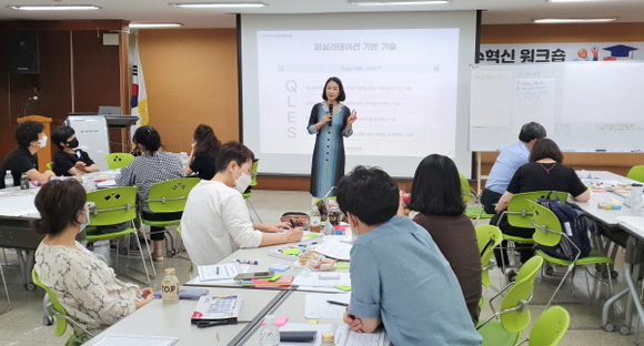 이날 워크숍은 ‘참여하는 수업, 가르치지 않는 배움’을 주제로 학습자 주도성을 회복하고자 ▲새로운 틀 ▲학습하는 인간 ▲구조와 절차 ▲반응하는 수업 ▲수업의 설계 ▲종합 및 마무리 등 6개 과정을 통해 철학, 기법, 학습내용 측면에서의 다양한 논의를 진행했다.