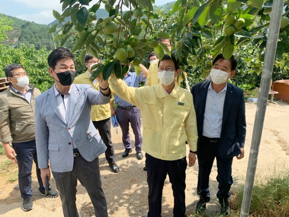 이날 윤해진 본부장은 사천시 사천읍의 사과 과수원(15,000평) 농가와 고성군 파프리카(5,000평) 농가를 방문해 농가의 애로사항을 청취하고 배수로 정비와 낙과 방지 등을 위한 시설을 점검했다.