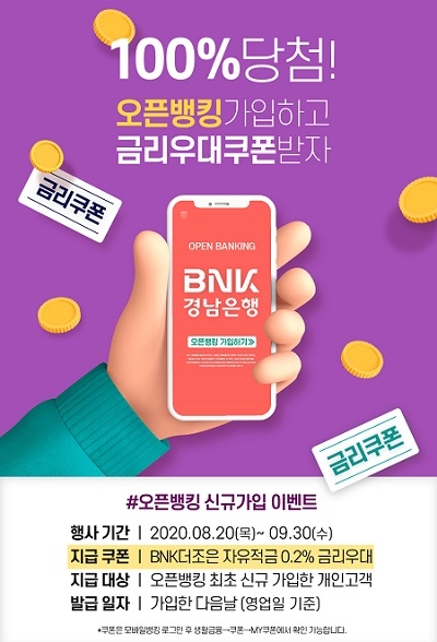 BNK경남은행이 오는 30일까지 '오픈뱅킹서비스 신규가입 이벤트'를 진행하고 있다.
