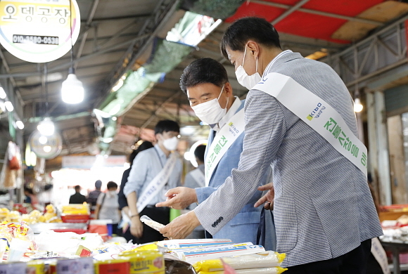 이날 박세규 기보 감사와 본점 직원들은 철뚝시장 내 음식점에서 점심 식사를 한 뒤 개인별로 시장 내 점포를 방문해 필요한 물품을 구매하는 장보기 행사를 시행했다.