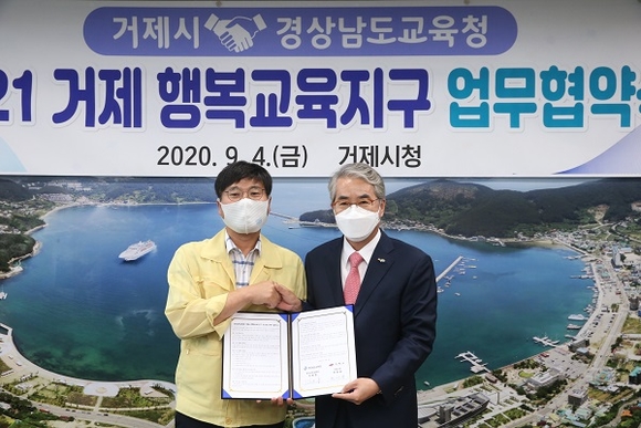 경남도교육청과 거제시는 4일 오후 거제시청 시장실에서 2021년 행복교육지구 추진을 위한 업무협약식을 가졌다.