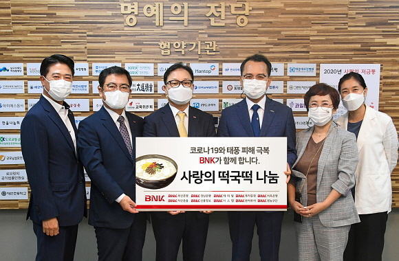 BNK금융그룹 관계자는 “이번 나눔 행사가 코로나19 확산과 태풍 피해 등으로 어려움을 겪는 우리 이웃들에게 작은 위로가 되길 바란다”며 “BNK금융은 앞으로도 지역과 따뜻한 나눔을 실천할 수 있는 다양한 사회공헌 활동을 지속해서 이어가겠다”고 말했다.