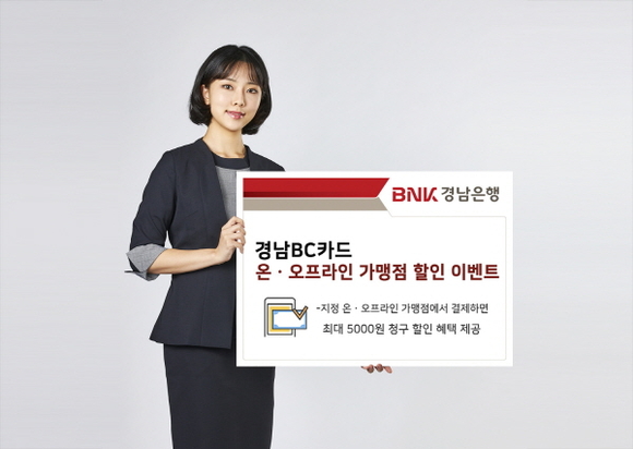 BNK경남은행은 오는 30일까지 ‘경남BC카드 온·오프라인 가맹점 할인 이벤트’를 진행한다.