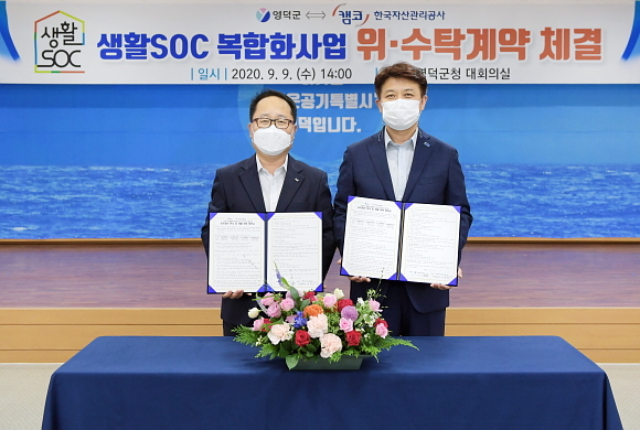 한국자산관리공사(캠코)가 9일 오후 2시 영덕군청 본관 회의실에서 영덕군과 총 689억원 규모의 ‘생활 SOC 복합화 사업 추진 위·수탁 계약’을 체결했다고 밝혔다.