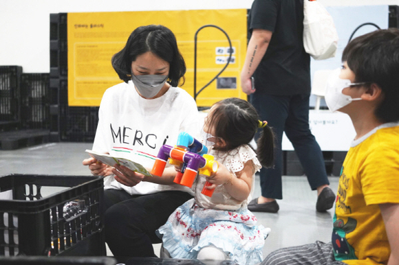 환경 이슈를 다룬 전시인 만큼 홍보를 위해 제작한 가로등 배너는 에코백으로, 안내패널은 캠핑용 의자로 만드는 등 기획 초기 단계부터 재활용을 고려해 전시물을 꾸렸다. 단순히 플라스틱 사용을 자제하라는 메시지보다는 우리가 어떻게 플라스틱을 사용하는 것이 슬기로운지 질문을 던지는 전시로 구성됐다.