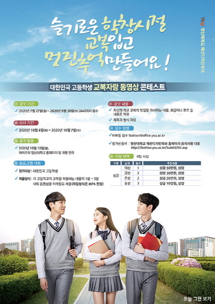 와이즈유(영산대학교) 패션디자인학과가 언택트(untact) 문화 확산에 기여하는 ‘대한민국 고등학생 교복자랑 콘테스트’ 접수를 오는 30일까지 실시한다.