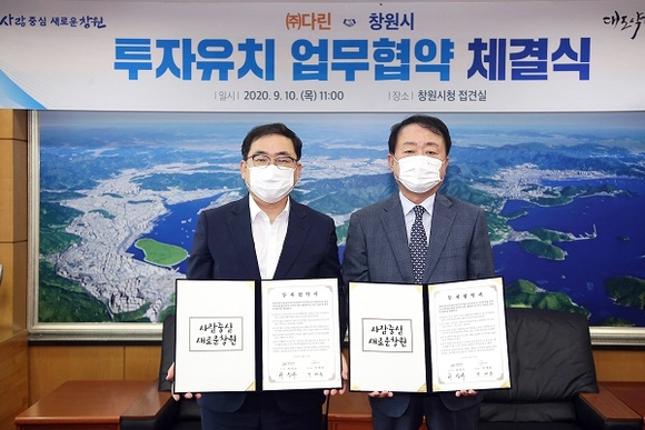 이날 협약식에는 허성무 창원시장과 다린 박계홍 대표, 전진모 경영지원본부장 등이 참석했다.