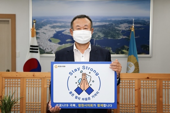 창원시의회 이치우 의장이 코로나 19극복과 조기 종식을 응원하는 '스테이 스트롱(stay strong) 캠페인'에 동참했다.