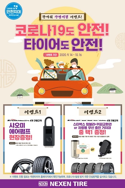 넥센타이어가 다가오는 한가위를 맞아 구매 고객 대상 안전 기원 사은 이벤트를 실시한다고 14일 밝혔다.