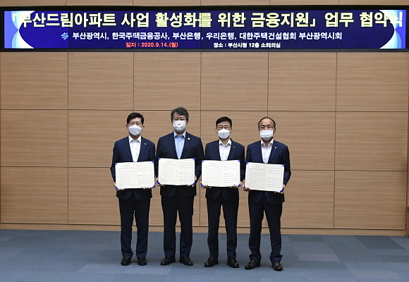 또 우리은행은 주택도시기금 대출을 활용한 건축비를 지원하기로 했으며 대한주택건설협회 부산시회는 지역 건설 회원사에 드림아파트 사업을 홍보해 사업 활성화를 위한 유기적 협력 체계를 구축키로 했다.