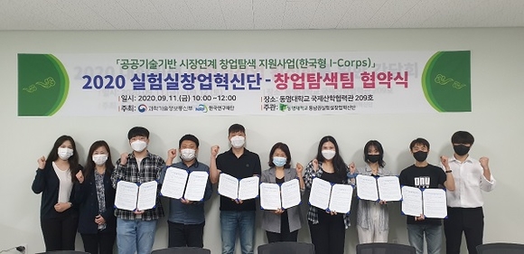 동명대학교 동남권실험실창업혁신단은 지난 11일 국제산학협력관(209호)에서 7개 대학 총 8개 실험실창업탐색팀과 함께 '2020 실험실창업혁신단-창업탐색팀 협약식'을 가졌다.