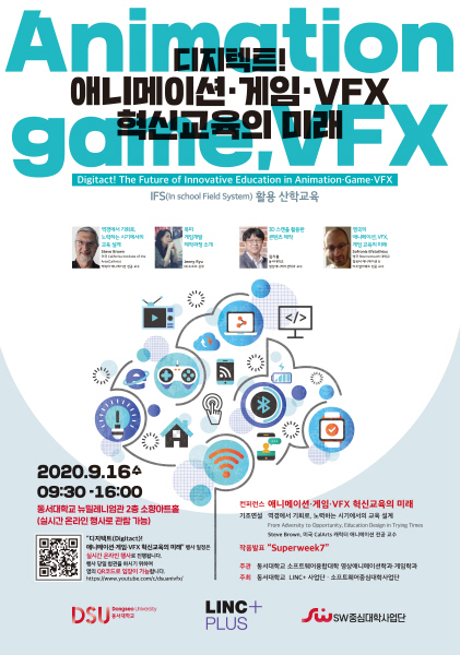 동서대학교는 ‘디지텍트(Digitact)! 애니메이션·게임·VFX 혁신교육의 미래-IFS(In school Field System) 활용 산학교육’ 행사를 오는 16일 동서대 뉴밀레니엄관 2층 소향아트홀에서 연다고 밝혔다.