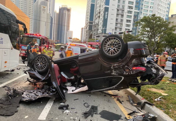 이와 함께 A씨는 사고를 낸 직후 도주하다 두 차례 더 사고를 낸 것으로 드러났다. 경찰에 따르면 A씨는 해운대센트럴 푸르지오 앞에서 정차 중인 차량 두 대를 충격 후 약 500m 도주하다 중동지하차도에서 차량 후면을 추돌 후 다시 달아나 중동 이마트 교차로에서 오토바이 후면을 추돌하고 맞은편 차로에 신호대기 차량 2대를 전면 추돌했다.