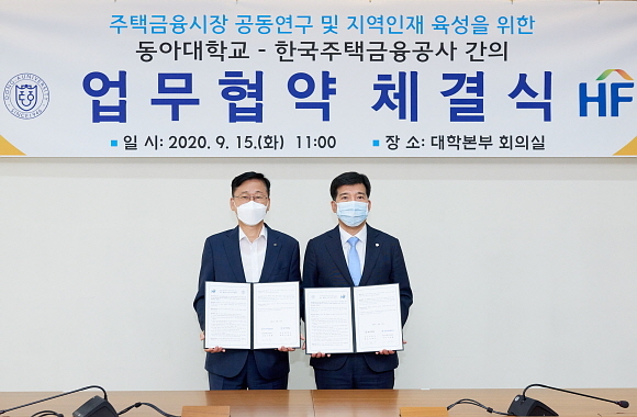 한국주택금융공사(주금공)와 동아대학교가 15일 오전 ‘주택금융시장 공동 연구, 지역 인재 육성을 위한 산-학 협력’ 업무협약을 체결했다고 밝혔다.