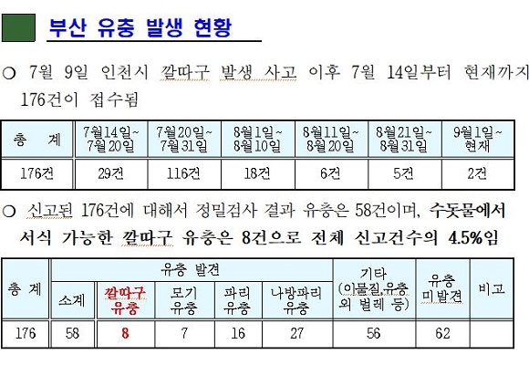 이외에도 최근 유충 의심 신고 해결을 위해 수질전문가, 배관전문가, 해충전문가로 구성된 ‘민-관 합동 역학조사반’을 조직해 운영할 예정이다. 지난 7월 9일 인천에서 첫 수돗물 깔따구 유충이 발견된 이후 부산에서는 현재까지 총 176건의 유충 신고가 접수된 가운데 실제 시료를 확보한 건은 114건으로 확인됐다.