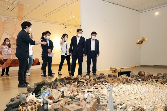 경남 창원시가 주최하고 창원문화재단이 주관하는 2020창원조각비엔날레 개최 첫날, 허성무 창원시장이 현장을 방문 점검했다.