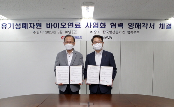 동서발전은 18일 오후 2시 발전공기업 협력본부(서울 강남구 소재)에서 키나바와 ‘유기성폐자원 바이오연료 사업화 협약’을 체결했다. 이 사업은 폐목재, 축분 등 국내의 유기성폐자원을 재활용해 친환경 바이오연료를 생산하고, 이를 전력 생산에 사용하기 위한 것이다.
