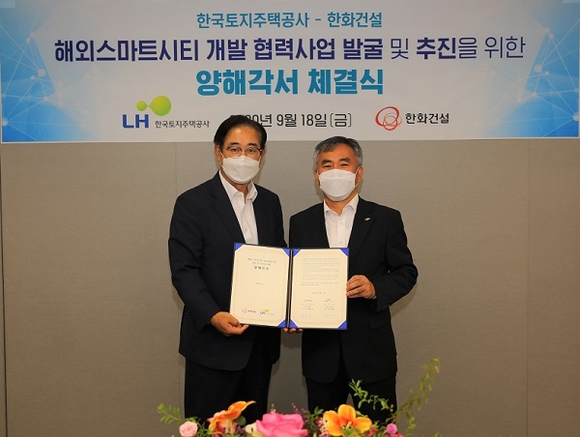 한국토지주택공사(LH)는 18일 한화건설과 해외 스마트시티 개발 협력사업 발굴 및 추진을 위한 업무협약(MOU)를 체결했다.