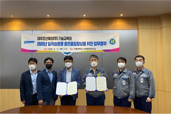 거제대학교 듀얼공동훈련센터는 대우조선해양 기술교육원과 일학습병행 훈련품질향상을 위한 업무협약을 지난 17일 거제대 산학협력회의실에서 체결했다고 21일 밝혔다.