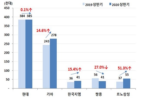 먼저 자동차산업은 개별소비세 인하, 신차 효과 등에 따라 내수는 상반기 증가했지만 수출은 코로나19 팬데믹으로 인해 전년동기대비 30% 감소한 것으로 나타났다. 부산지역 완성차 업체는 신차 판매 호조로 내수는 51.3% 증가했으나 수출은 되려 74.8% 감소한 것으로 조사됐다.
