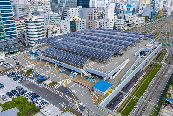 부산역 선상 주차장에 설치된 태양광설비는 연간 1150㎿h 규모의 전력을 생산할 수 있다. 이는 총 1만 1300가구가 한 달 동안 사용할 수 있는 전력량으로 25억원대 원유수입 대체 효과와 511톤 규모의 온실가스 감축 효과를 거둘 수 있다.